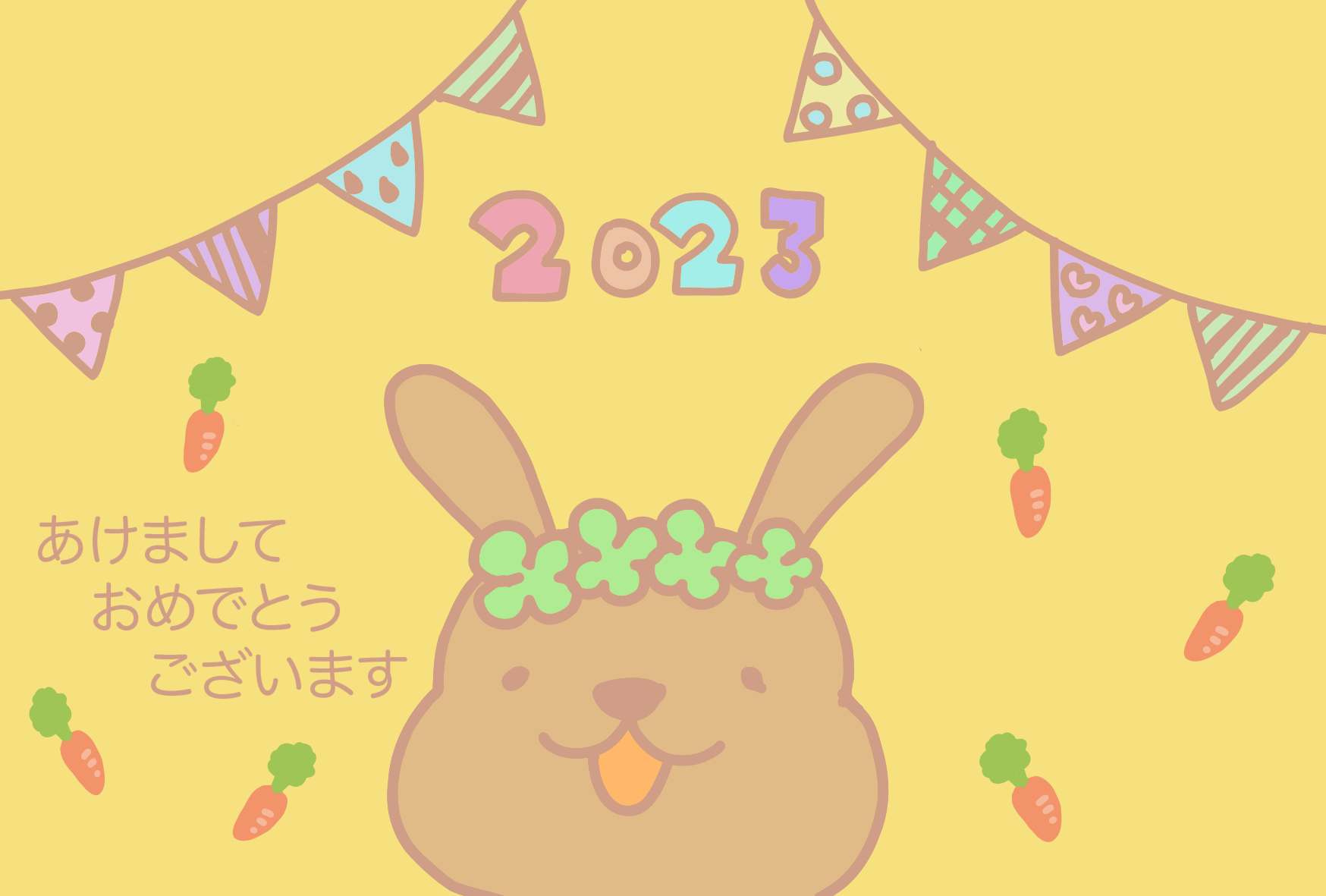 ウサギ ニンジン 2023 新年 挨拶 お便り 年賀状 ガーランド あけましておめでとうございます