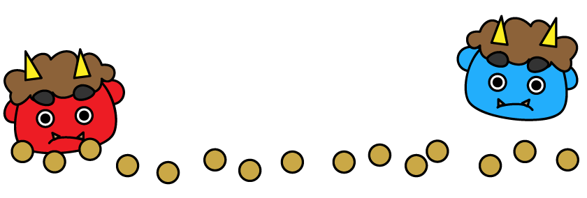 冬のイベント 赤鬼 青鬼 豆まき 豆 えんだより お便り 鬼は外