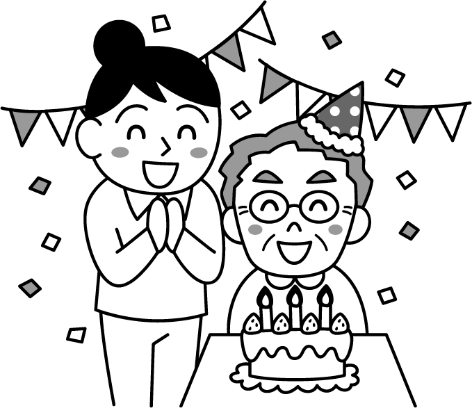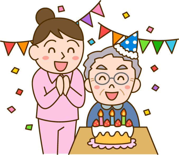 お祝い ガーランド 帽子 レクリエーション レク パーティー 食べ物 スイーツ ケーキ お誕生日ケーキ 誕生日ケーキ お誕生日 誕生日 おじいちゃん おじいさん 女性 ヘルパー 介護士 高齢者 老人 お年寄り 老人ホーム デイサービス 介護施設 男性