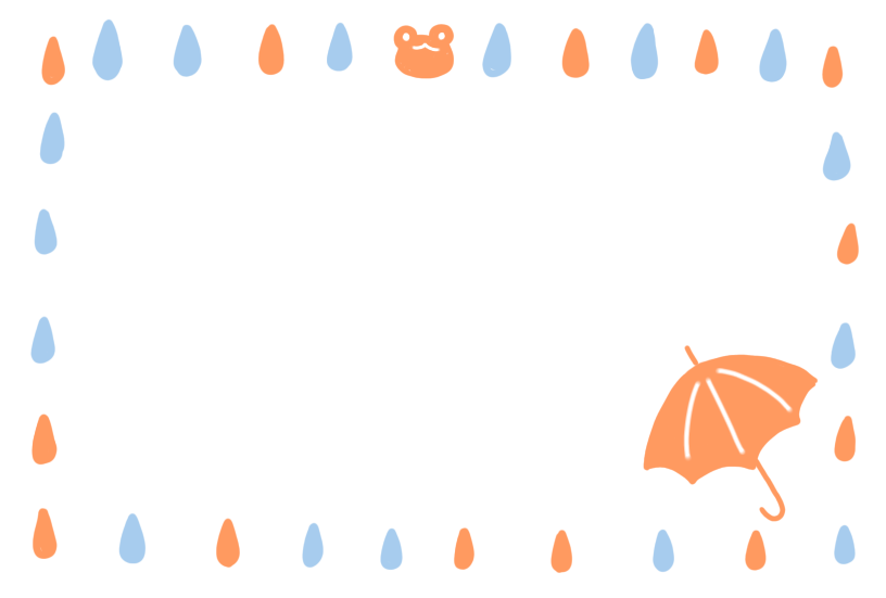 掲示板 手紙 おたより メッセージ カサ 傘 かえる 蛙 カエル 雨 梅雨 あめ しずく 6月 夏フレーム 6月