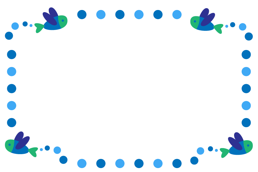 夏フレーム 海の生きもの さかな 魚 えんだより お便り 手紙 水しぶき 水玉