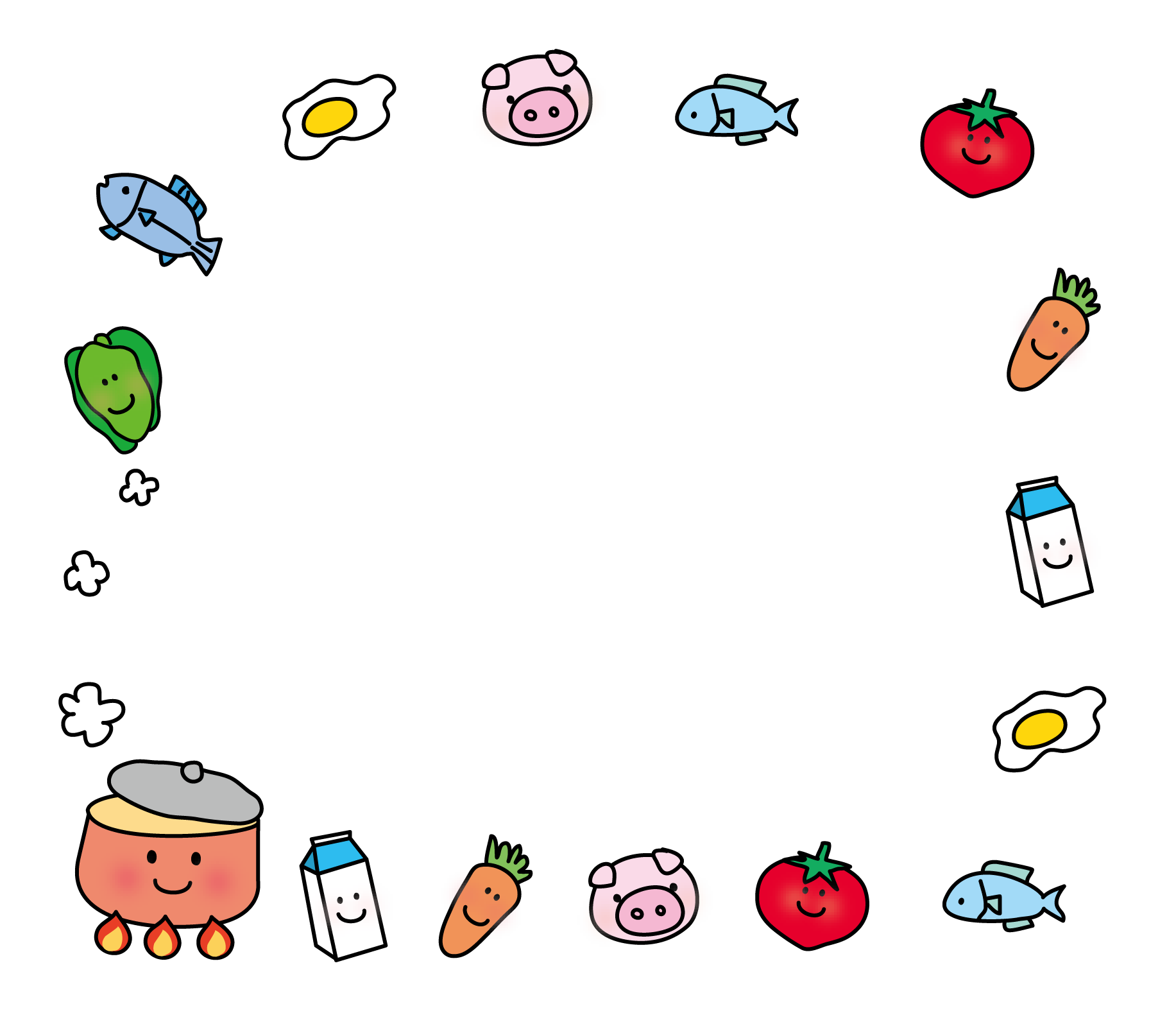 魚 タンパク質 ビタミン 緑黄色野菜 カルシュウム ピーマン とまと 目玉焼き 卵焼き 卵 たまご 食育特集 食育だより 人参 にんじん トマト 野菜 牛乳 乳製品 豚 肉