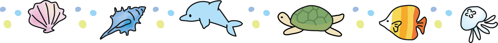 夏のイベント 夏の特集 ライン 囲み 貝殻 貝 チョウチョウウオ イルカ 海 亀 カメ うみがめ 海亀 ウミガメ くらげ 海月