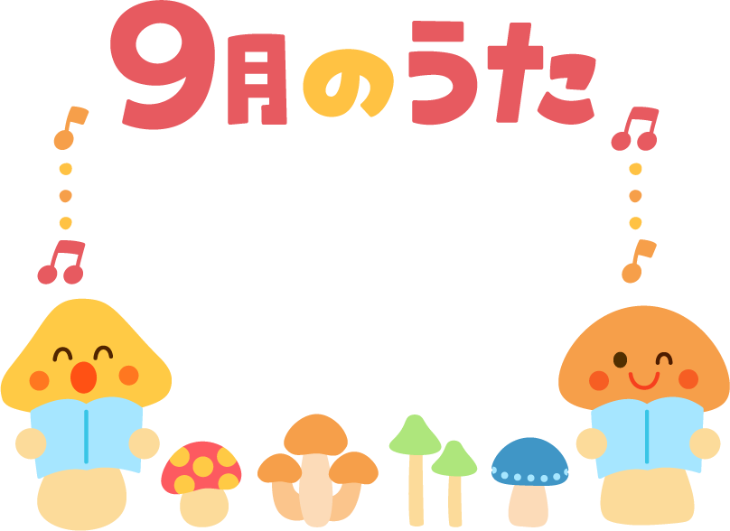 9月 歌 うた きのこ 茸 キノコ 食べ物 秋フレーム 9月のうた 9月の歌 音符