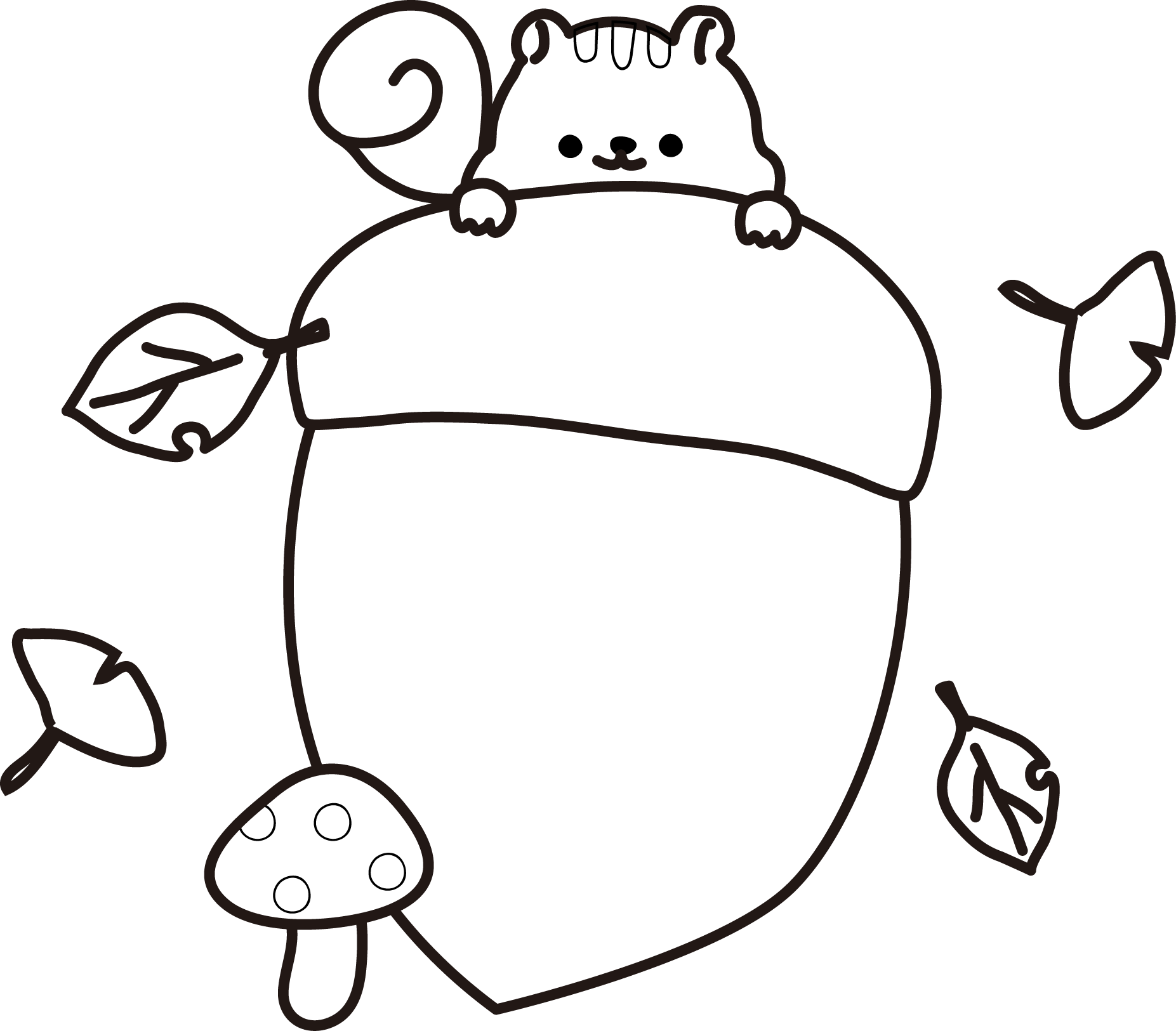 秋の特集 どんぐり りす 落ち葉 きのこ 秋の味覚