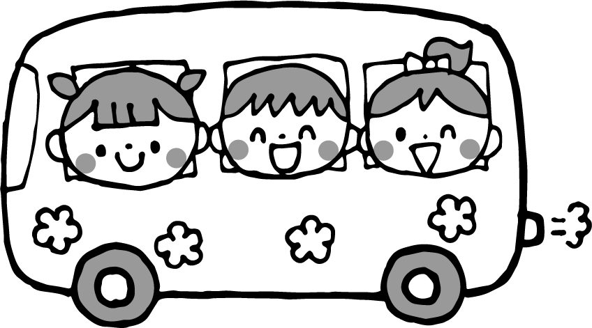 遠足バス 遠足 バス 園児 男の子 女の子 子ども こども 秋の遠足 春の遠足 花 車 おでかけ お出かけ ともだち なかよし