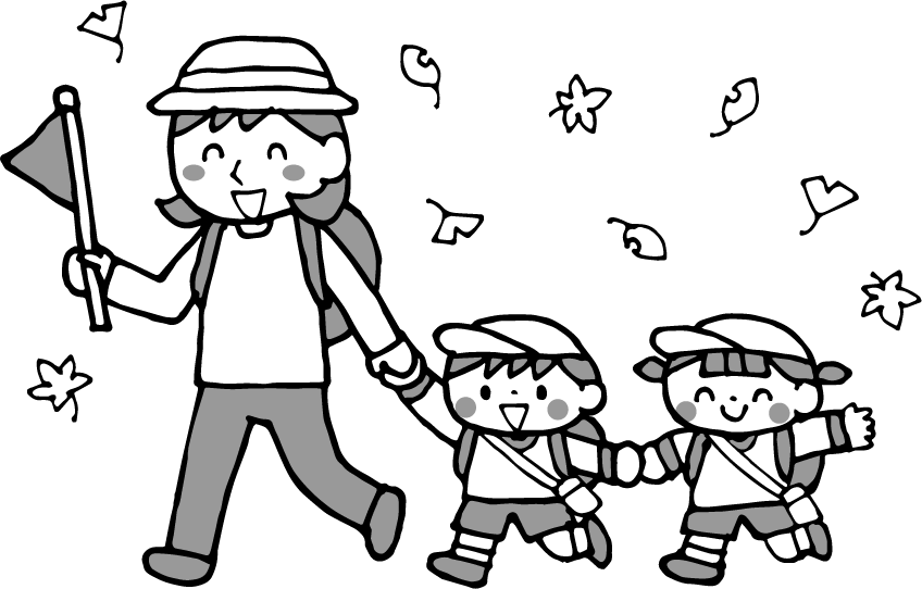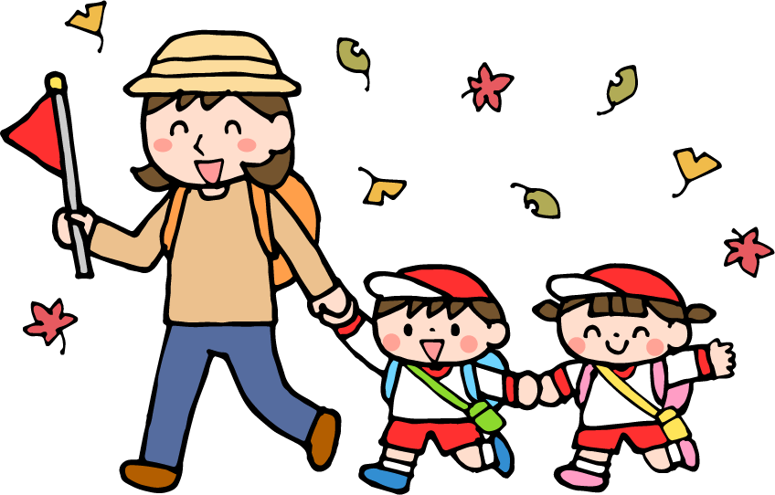 旗 体操服 帽子 水筒 リュック 女の子 男の子 こども 子ども 女性 大人 園児 保育士 先生 遠足 春の遠足 秋の遠足 紅葉 もみじ 葉っぱ イチョウ 落ち葉 おさんぽ お散歩 さんぽ おでかけ お出かけ 散歩