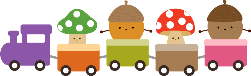 掲示板 手紙 おたより メッセージ きしゃ 電車 でんしゃ 乗り物 のりもの キノコ きのこ どんぐり ドングリ 秋ライン