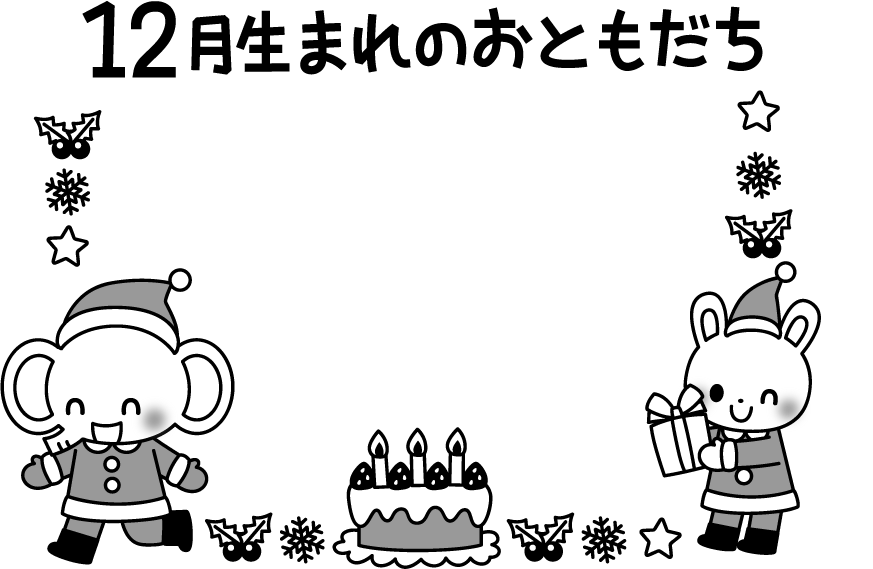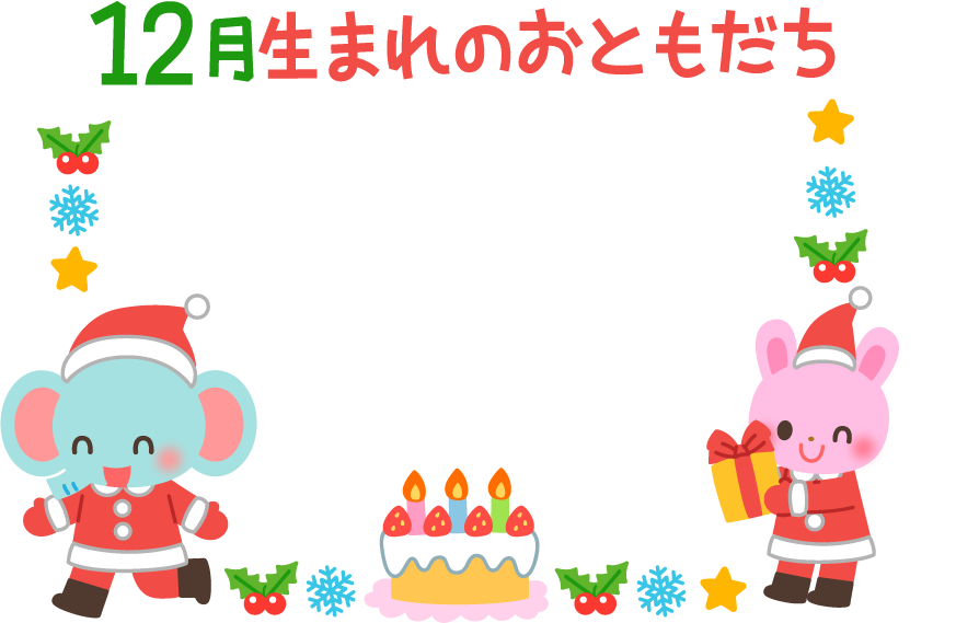 12月 12月 12月生まれのおともだち 12月生まれのお友達 誕生日 お誕生日 ケーキ 星 ヒイラギ 雪の結晶 サンタクロース 動物 うさぎ ウサギ 兎 ぞう ゾウ 象 プレゼント 冬フレーム