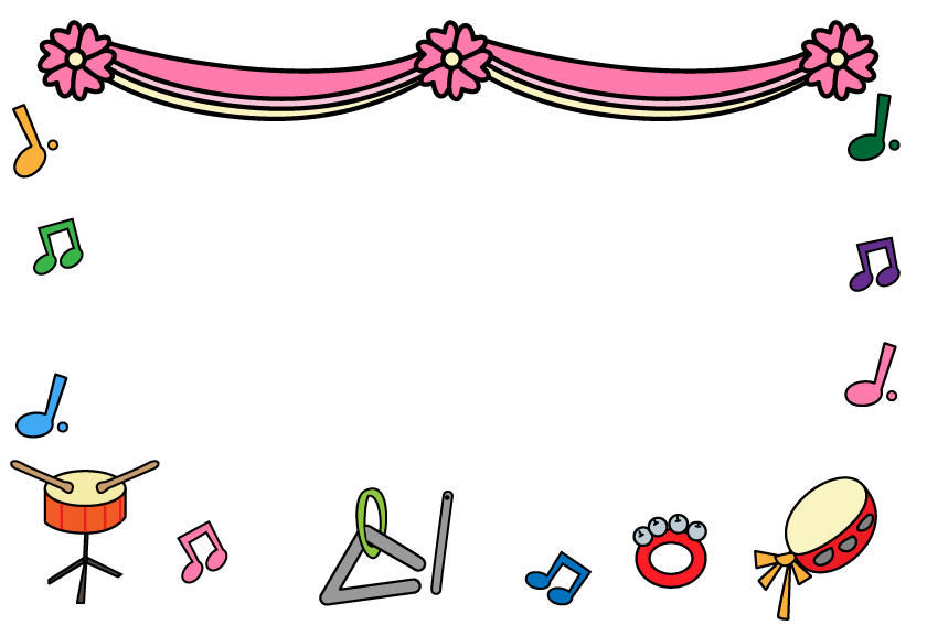 発表会 太鼓 タンバリン 鈴 音符 うた トライアングル 楽器 イベント えんだより お便り 手紙