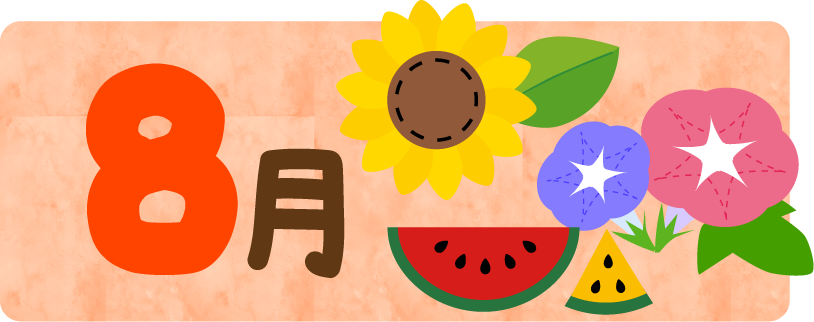 向日葵 ヒマワリ ひまわり 朝顔 アサガオ あさがお すいか スイカ 西瓜 メッセージ おたより 手紙 掲示板 園だより 8月