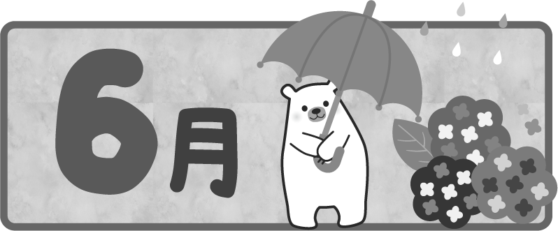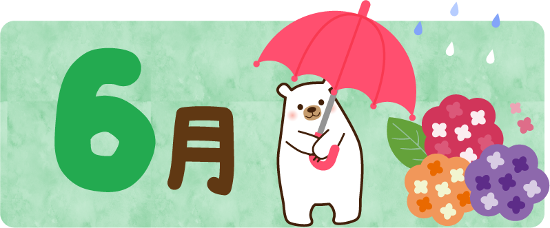 クマ くま 雨 梅雨 つゆ 傘 カサ かさ アジサイ 紫陽花 あじさい メッセージ おたより 手紙 掲示板 園だより 6月