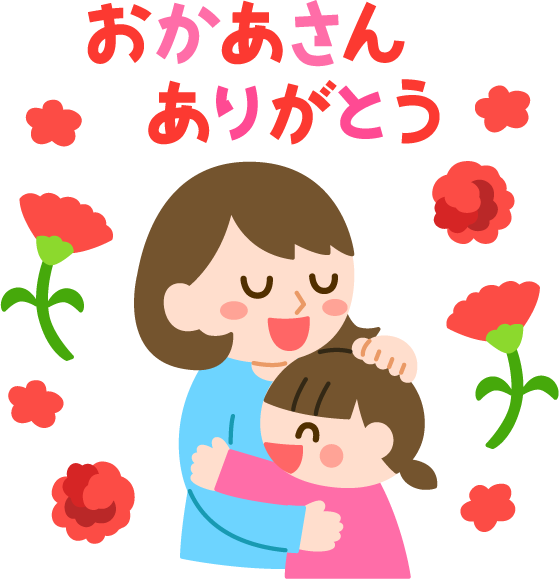 母の日 お母さん ありがとう 子ども こども 女の子 メッセージ 母 カーネーション 花 抱きしめる 頭を撫でる 親子