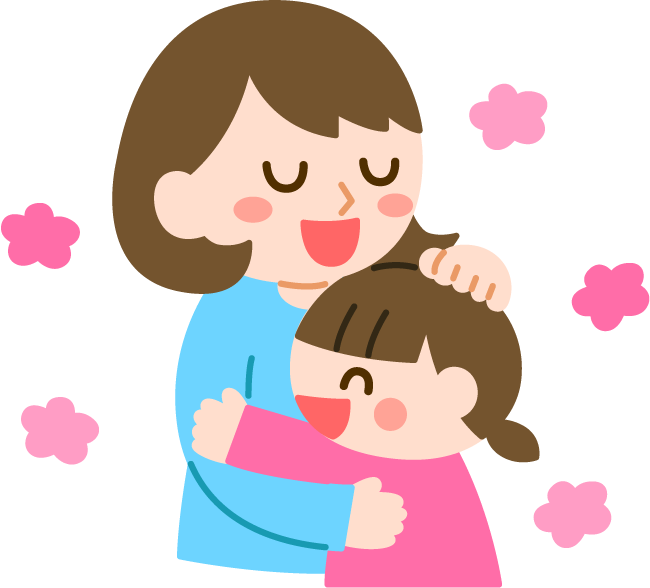 母の日 お母さん 母 子ども こども 女の子 抱きしめる 頭を撫でる 親子 花 保護者