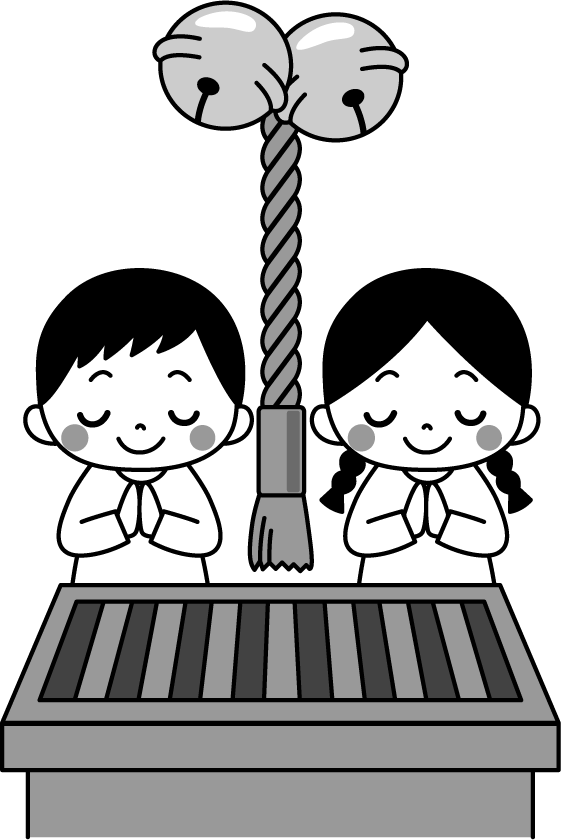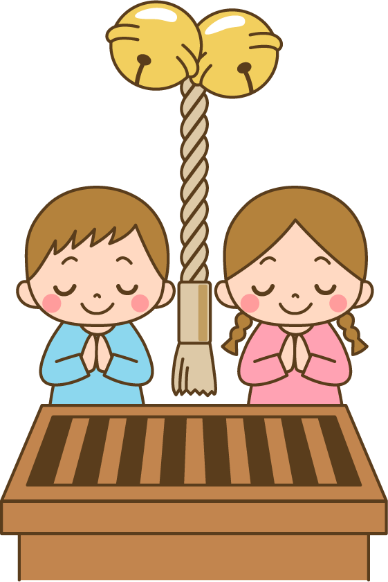 お参り お祈り 仏教 子ども こども 男の子 女の子 神社 参拝 園児 賽銭箱 鈴 ともだち なかよし