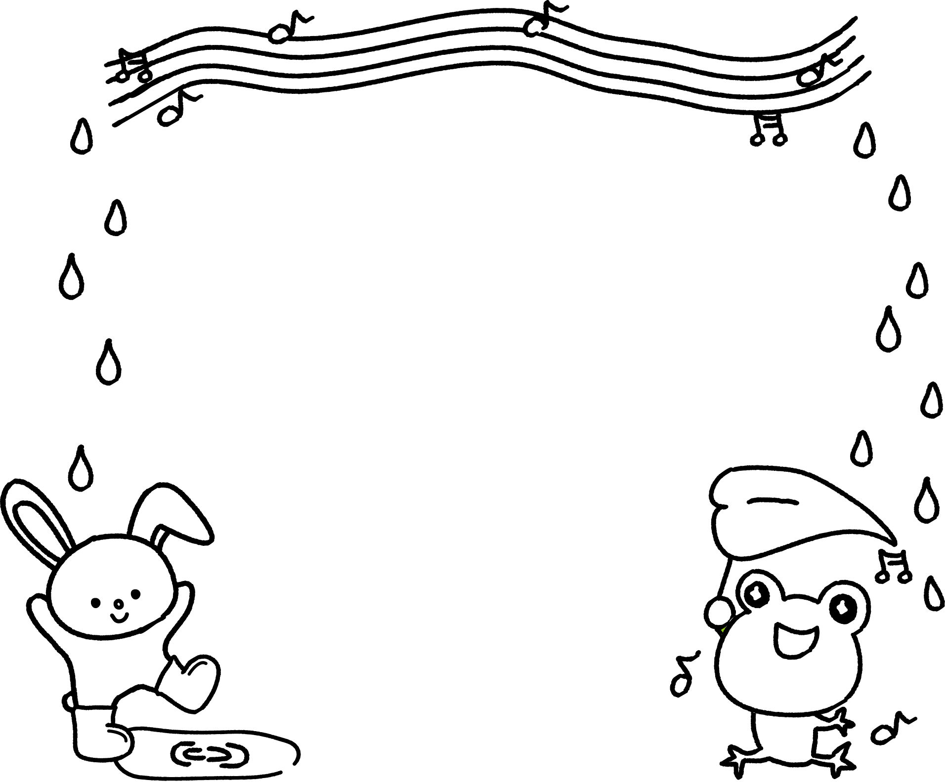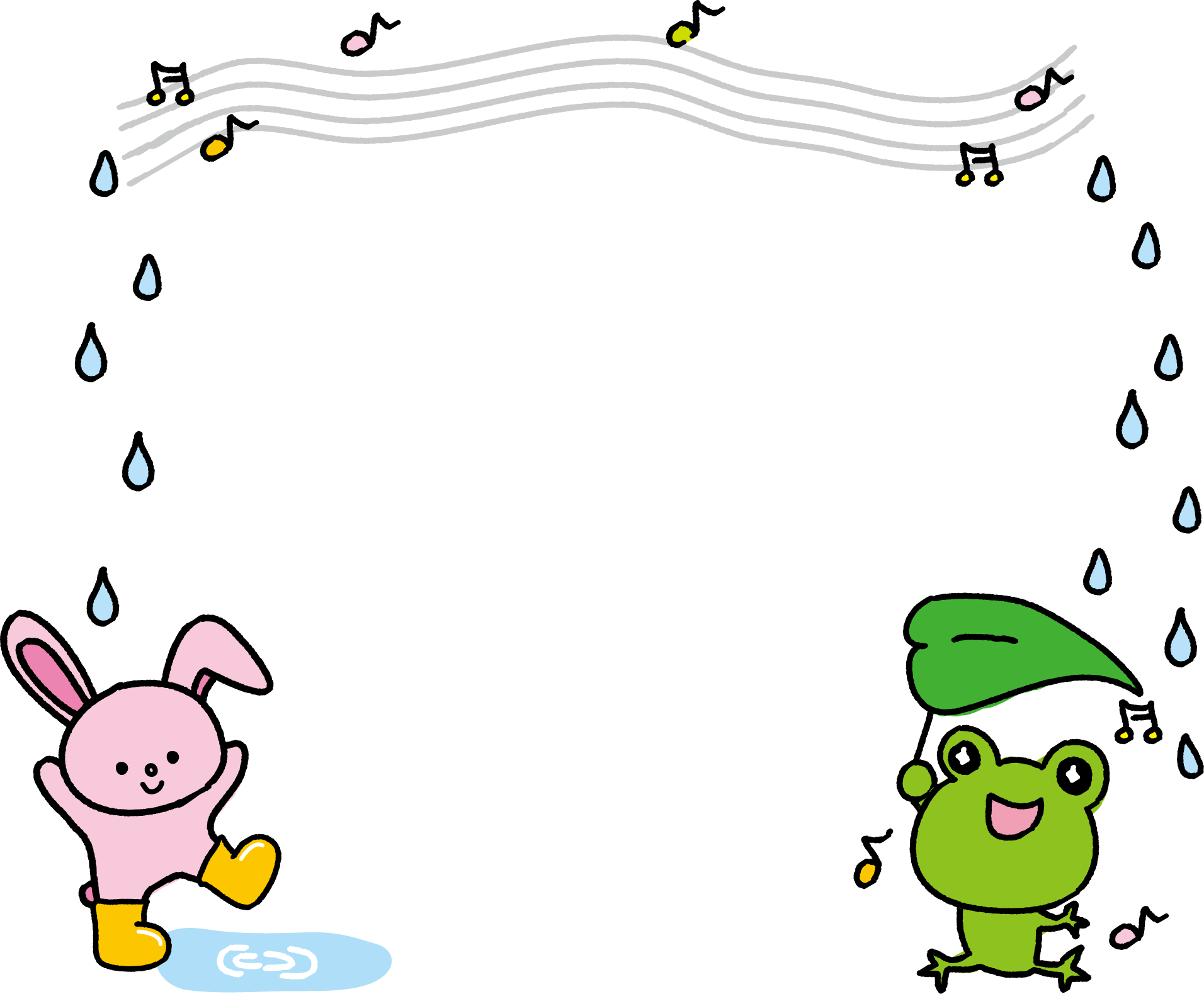 梅雨 6月 あめ 雨降り 傘 子ども かさ つゆ 紫陽花 あじさい 長靴 ながぐつ 蛙 かえる うさぎ ウサギ 雨 園だより えんだより お知らせ おしらせ 新聞 囲み