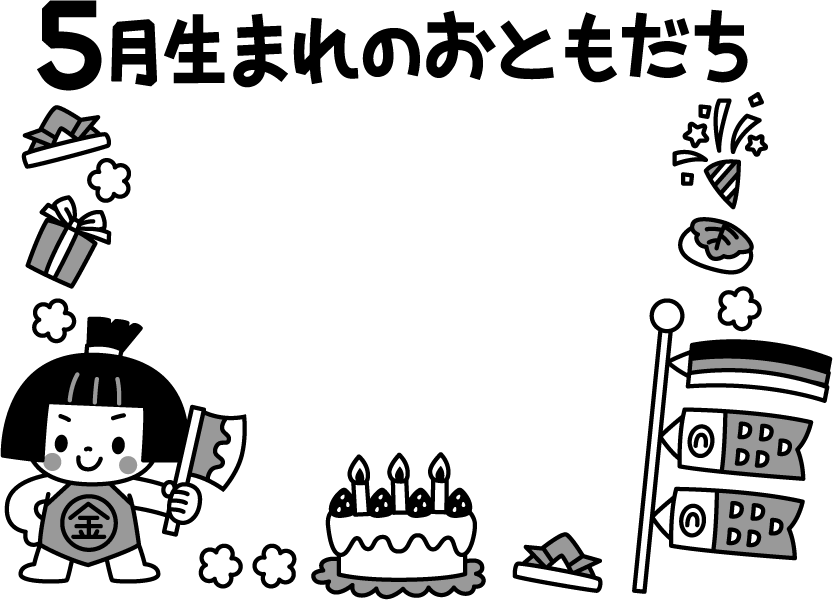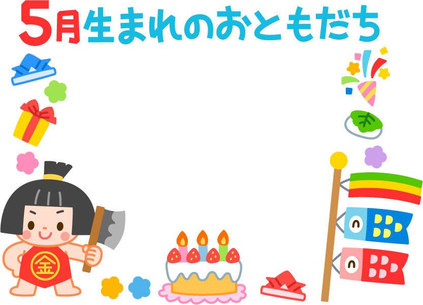 誕生日 5月生まれのおともだち 5月生まれのお友達 5月 5月 誕生日ケーキ ケーキ クラッカー 星 プレゼント 柏餅 餅 もち 食べ物 兜 かぶと 子どもの日 こどもの日 金太郎 花 鯉のぼり こいのぼり 春フレーム