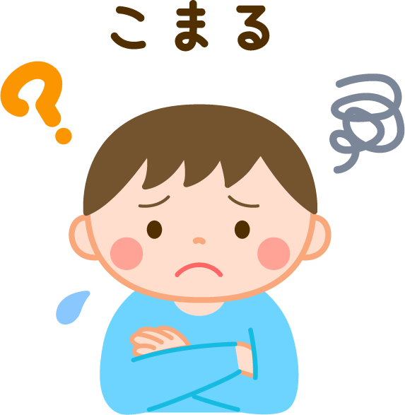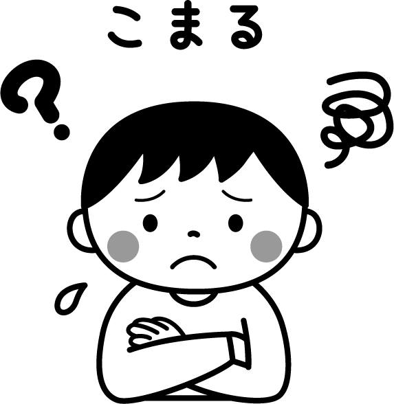 こまる 困る 困っている こまっている 考える 考えている 困り顔 顔 表情 気持ち 困惑 わからない 分からない ? 汗 園児 男の子 こども 子ども