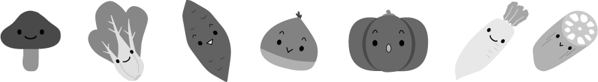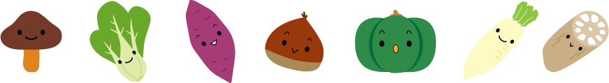 ベジタブル 食べる 給食 食べ物 食育 食育だより 南瓜 カボチャ かぼちゃ キノコ きのこ しいたけ シイタケ くり 栗 れんこん レンコン だいこん 大根 サツマイモ さつまいも チンゲンサイ 青梗菜 やさい 秋の野菜 お知らせ 園だより 手紙 掲示板 野菜マルシェ