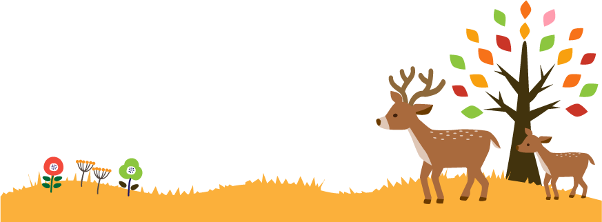 鹿 しか おやこ 動物 園だより 幼稚園 保育園 こども園 秋ライン 木 樹木 花 はな 親子 バンビ