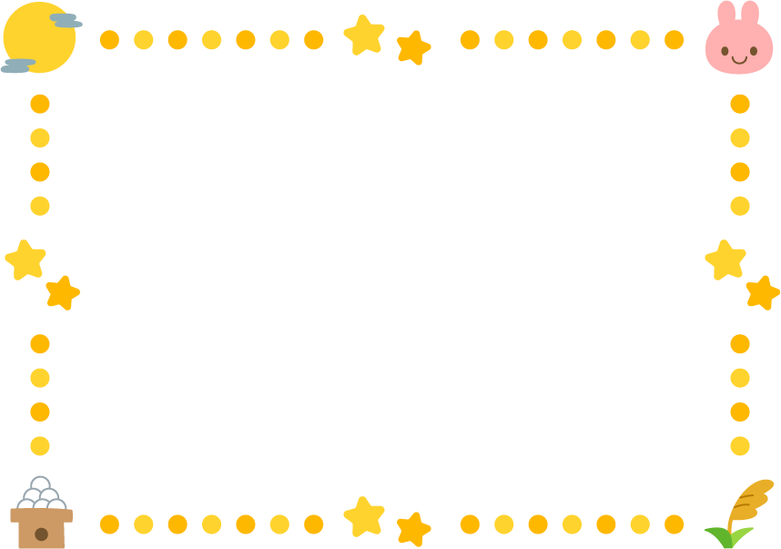 月見 中秋の名月 月見団子 月 キラキラ 星 ススキ 食べ物 お団子 団子 動物 兎 ウサギ うさぎ お月見 園だより こども園 幼稚園 保育園 秋フレーム
