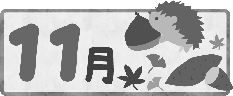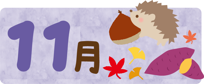 掲示板 園だより サツマイモ さつまいも はりねずみ ハリネズミ 栗 くり クリ 紅葉 もみじ モミジ 銀杏 いちょう イチョウ 11月