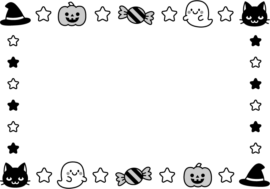 オバケ おばけ パンプキン 南瓜 カボチャ かぼちゃ キャンディー アメ あめ 星 帽子 動物 ネコ 猫 ねこ ハロウィン 園だより こども園 幼稚園 保育園 秋フレーム