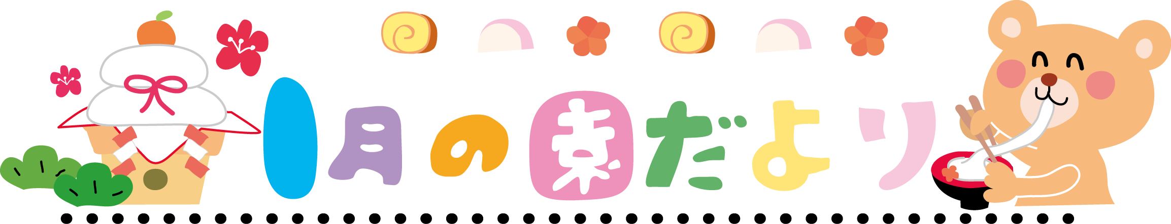 クマ くま タイトル 新聞 お便り おたより 園だより 1月 お正月 もちつき 雑煮 鏡餅