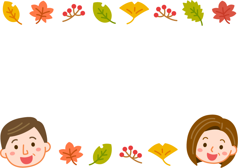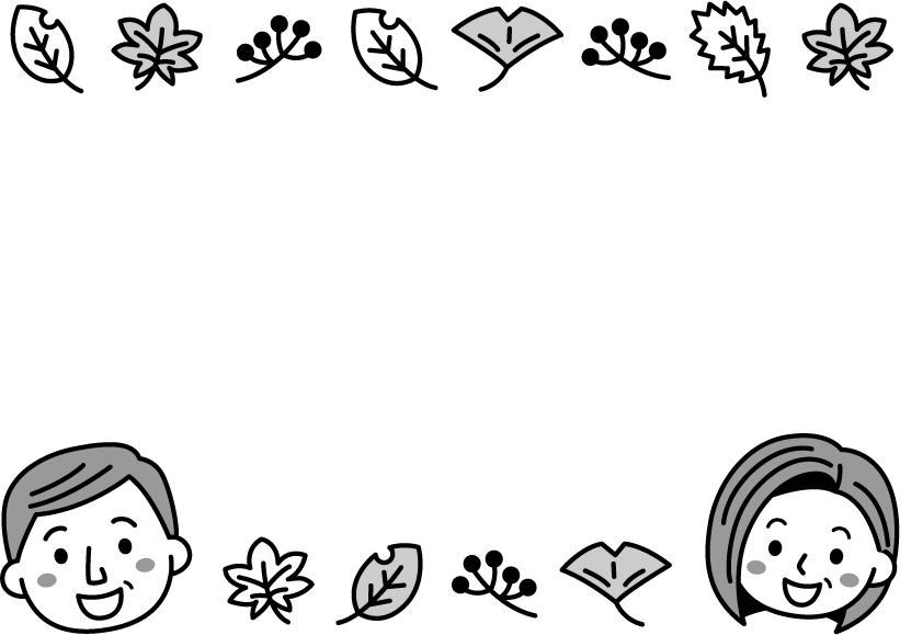 木の実 枯れ葉 葉 葉っぱ イチョウ 紅葉 敬老の日 園だより こども園 幼稚園 保育園 おじいちゃん おじいさん 男性 おばあちゃん おばあさん 女性 高齢者 老人 お年寄り 老人ホーム デイサービス 介護施設 秋フレーム
