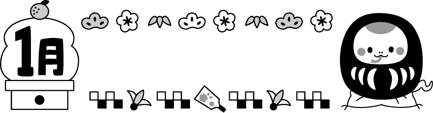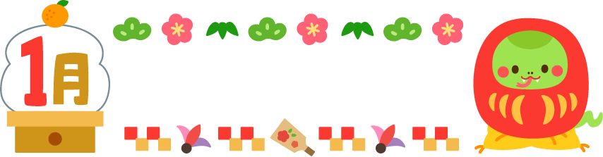 巳 ヘビ へび 蛇 園だより こども園 幼稚園 保育園 鏡餅 動物 ダルマ だるま 羽子板 松 梅 花 正月 お正月 1月 1月 冬フレーム 2025 2025