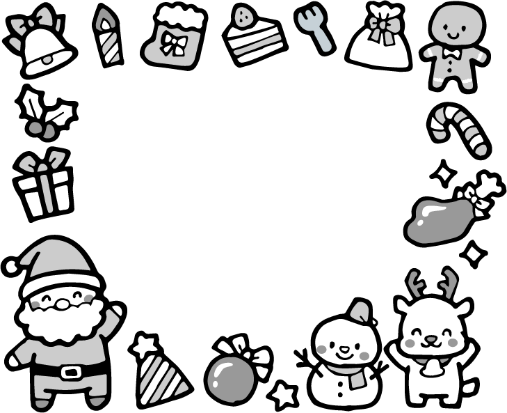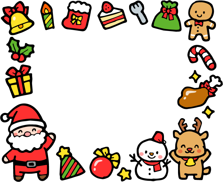 保育園 幼稚園 こども園 園だより 冬フレーム クリスマス クリスマスツリー 星 キラキラ サンタクロース トナカイ 雪ダルマ 雪だるま チキン クリスマスチキン 飾り プレゼント クリスマスケーキ ケーキ フォーク 食べ物 スイーツ お菓子 ロウソク 蝋燭 ヒイラギ 鈴 鐘 ジンジャークッキー ジンジャーマン クッキー ステッキ キャンディケイン キャンディケーン クリスマスステッキ サンタブーツ