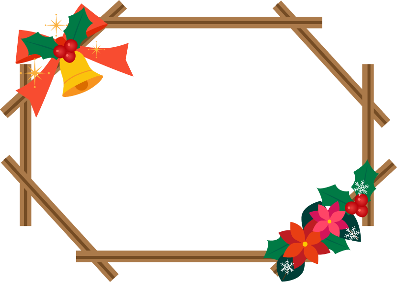 園だより メッセージ クリスマス くりすます クリスマス会 木の枠 ベル ひいらぎ ポインセチア リボン
