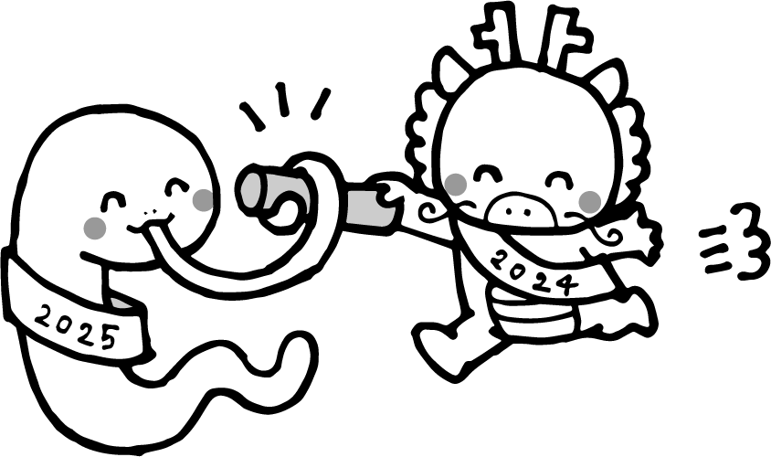 保育園 幼稚園 こども園 園だより お正月 正月 2025 へび ヘビ 蛇 巳 動物 年賀 年賀状 辰 龍 バトン バトンタッチ 2024 2024 タスキ たすき 2025
