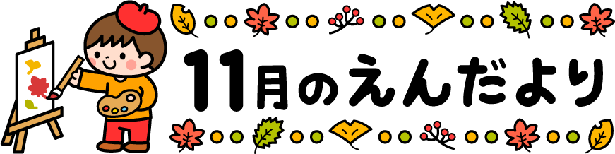 保育園 幼稚園 こども園 園だより えんだより 11月 11月 タイトル 枯れ葉 イチョウ 紅葉 落ち葉 キャンバス イーゼル 絵画 芸術の秋