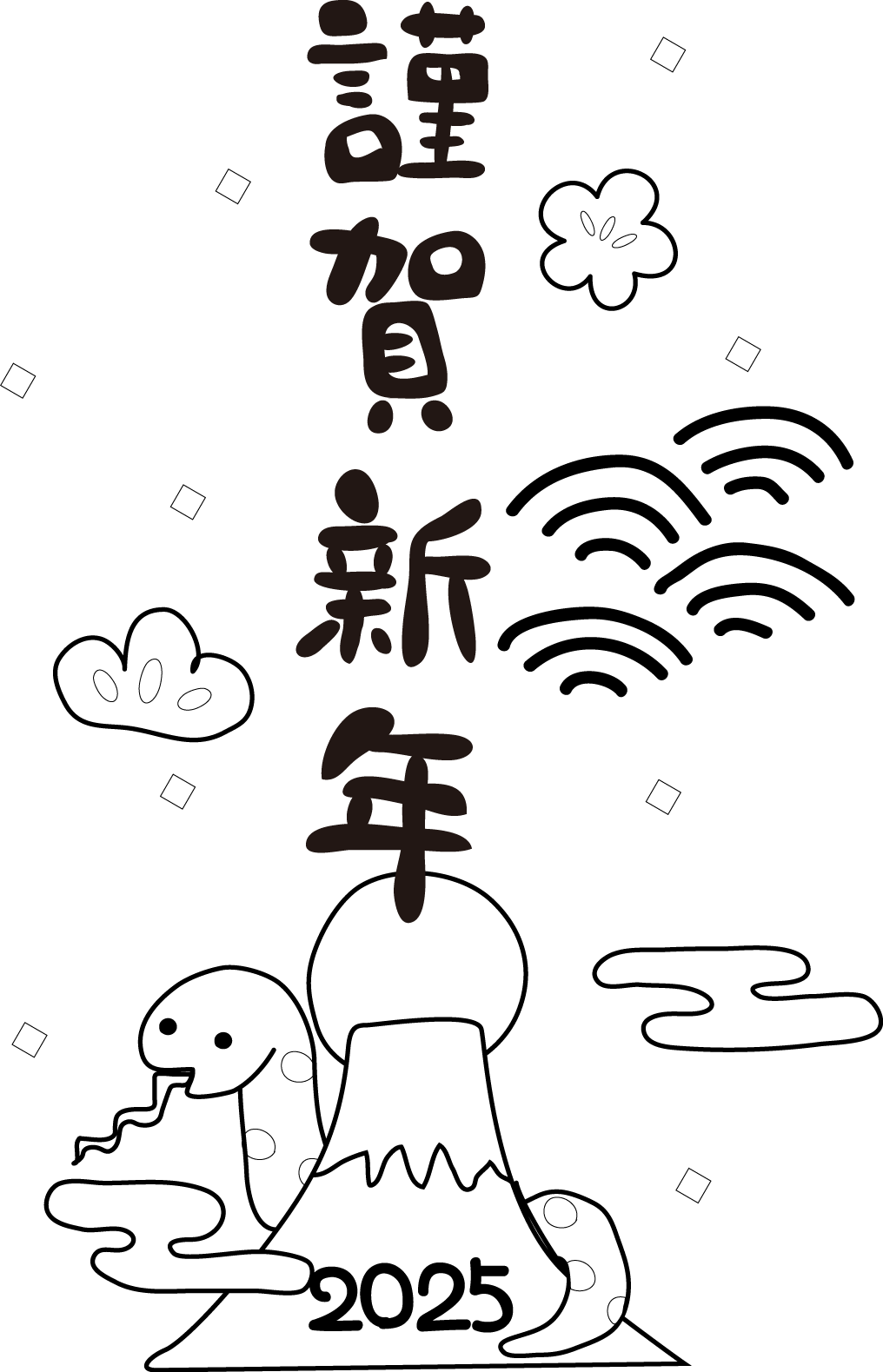 2025 ねんがじょう ねんが 蛇 へび 巳 干支 富士山 年賀状 謹賀新年