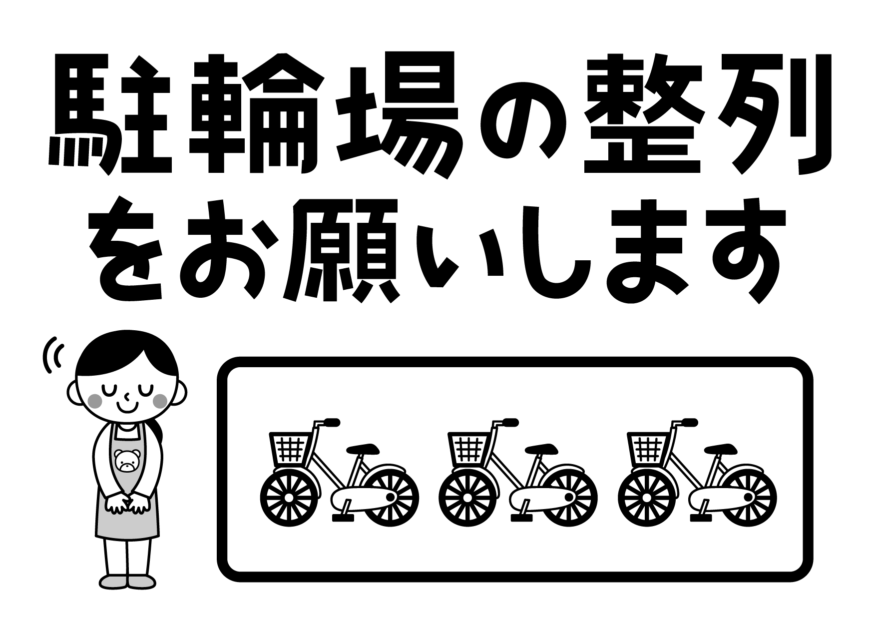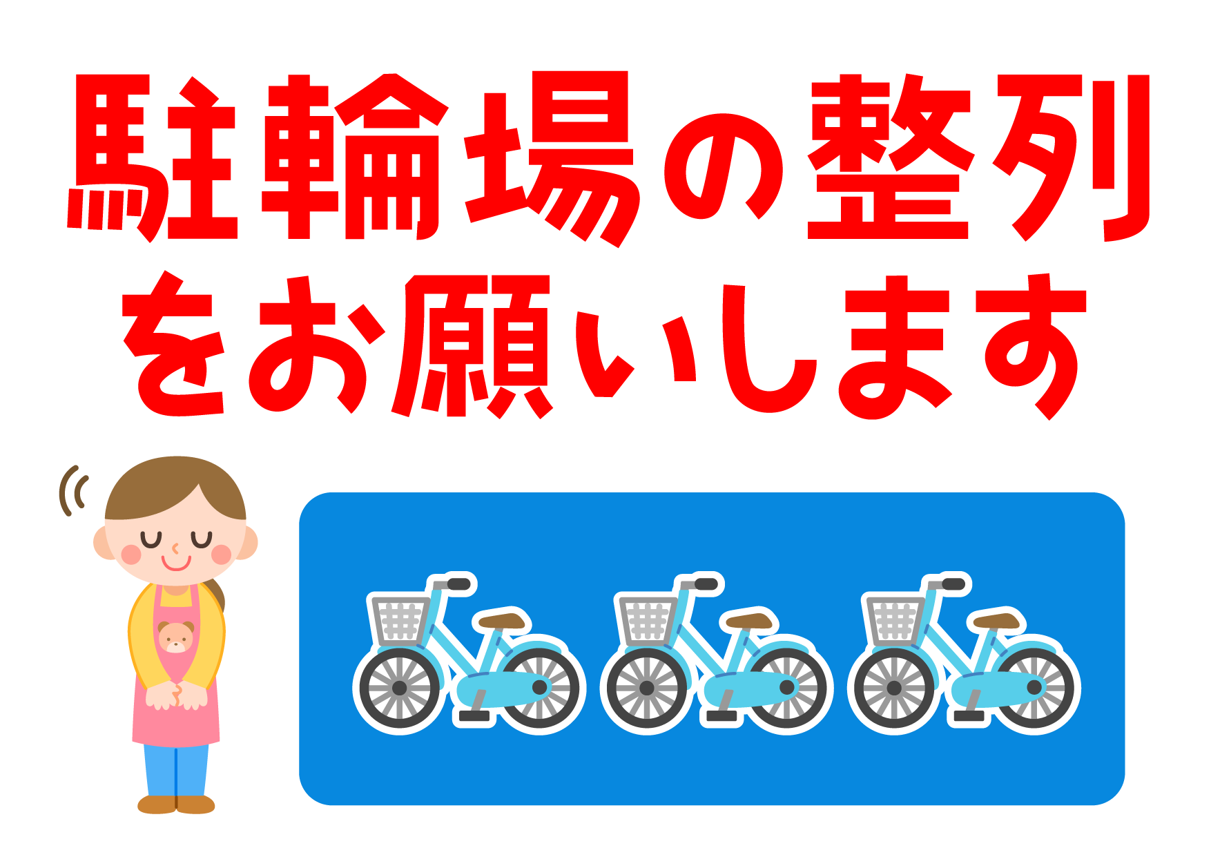 保育園 幼稚園 こども園 園だより えんだより 駐輪場の整列をお願いします 駐輪場 貼り紙 注意書き おねがい お願い 自転車 整列 看板 マナー 自転車置き場 リクエスト