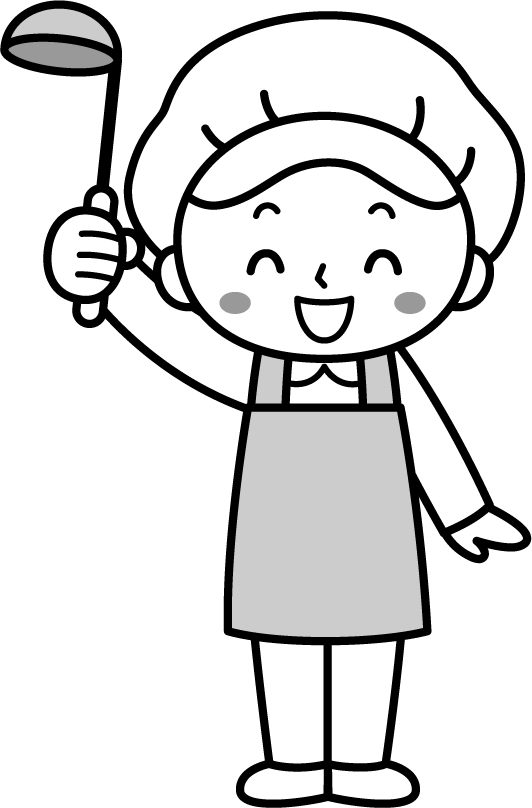 保育園 幼稚園 こども園 園だより えんだより 調理員 調理師 お玉 料理 調理 料理人 給食 食育 エプロン 女性