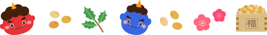 梅 ヒイラギ オニ おに 鬼 まめ 豆 鬼は外 節句 2月 せつぶん 掲示板 園だより