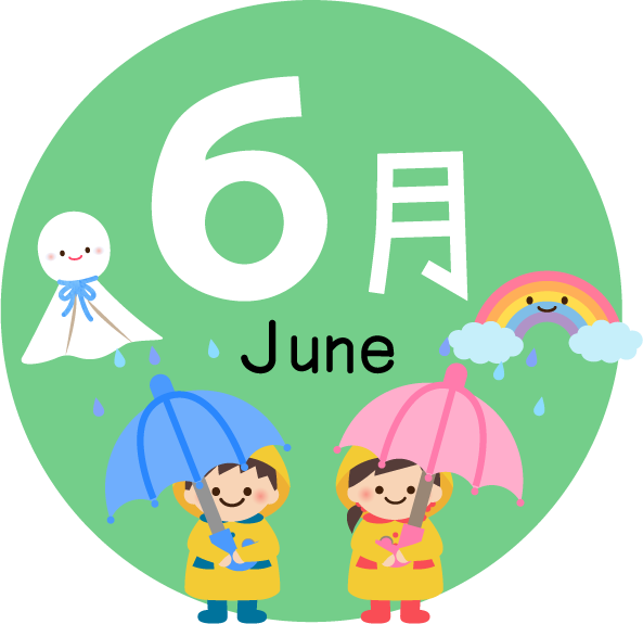 園だより おたより 虹 にじ てるてる坊主 かさ カサ 傘 つゆ 梅雨 雨 あめ 園児 児童 6月 子ども