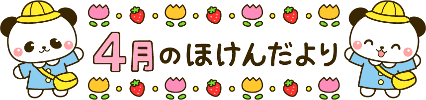 園児 パンダ ぱんだ 動物 フルーツ 果物 苺 イチゴ いちご チューリップ 花 保育園 幼稚園 こども園 園だより えんだより 4月 4月 タイトル ほけんだより 保健だより 保健