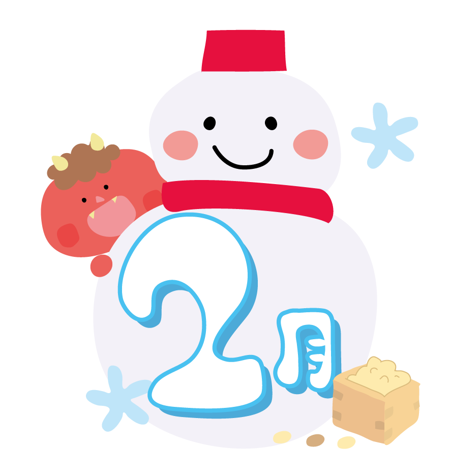 掲示板 手紙 おたより メッセージ 園だより えんだより タイトル 雪だるま 節分 鬼 赤鬼