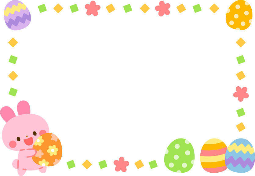 春フレーム 保育園 幼稚園 こども園 園だより えんだより イースター 復活祭 動物 うさぎ ウサギ 兎 たまご タマゴ 卵 エッグ 花