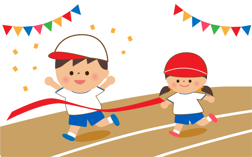 園だより お知らせ うんどうかい 体育 かけっこ 徒競走 走り 園児 ガーランド 運動場 走る