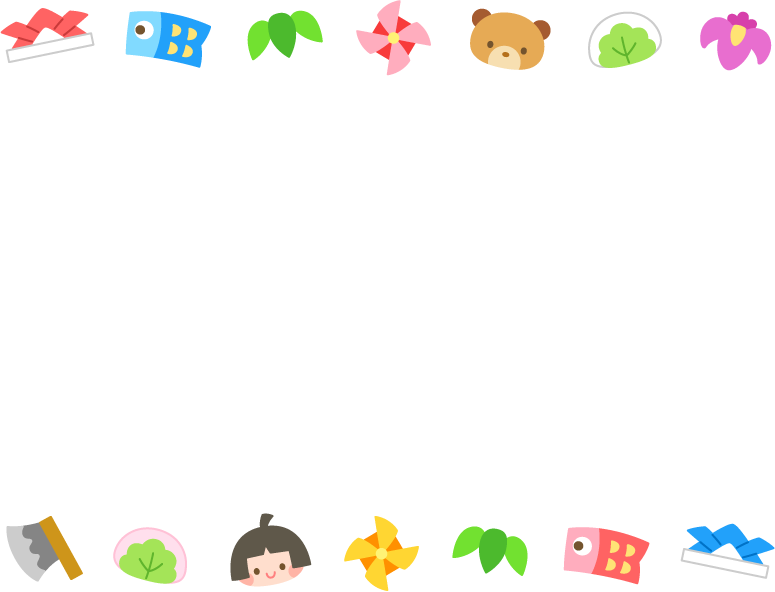 春フレーム 保育園 幼稚園 こども園 園だより えんだより 5月 5月 こどもの日 子供の日 子どもの日 端午の節句 笹 動物 くま クマ 熊 金太郎 斧 かしわ餅 柏餅 鯉のぼり こいのぼり 兜 カブト 風車 かざぐるま 花 ショウブ 菖蒲