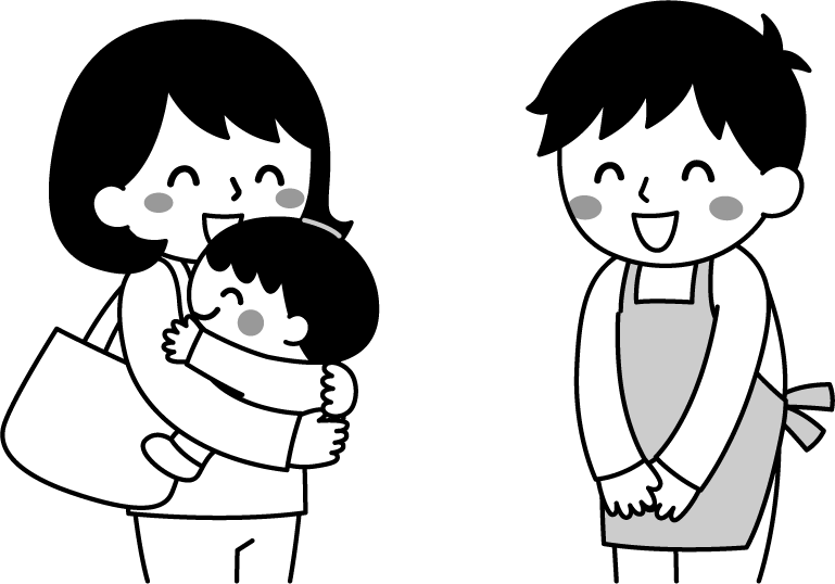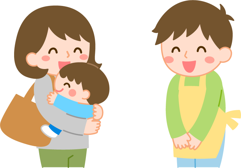 保育園 幼稚園 こども園 園だより えんだより 登園 降園 先生 保育士 園児 男の子 こども 子ども 子供 ばいばい バイバイ さようなら おはよう 男性 保護者 おかあさん お母さん 母親 親子 お迎え あいさつ 挨拶 リクエスト