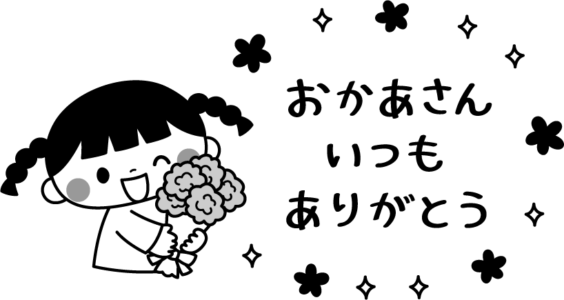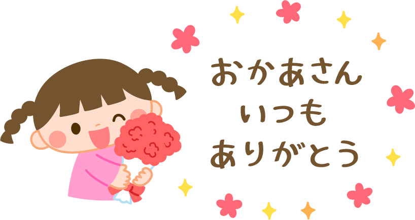 保育園 幼稚園 こども園 園だより えんだより 母の日 いつもありがとう おかあさん お母さん こども 子ども 子供 女の子 花 花束 カーネーション キラキラ