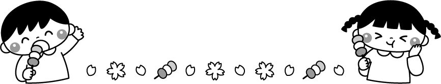 保育園 幼稚園 こども園 園だより えんだより 4月 4月 タイトル 園児 こども 子ども 子供 男の子 女の子 お花見 お花見団子 団子 だんご 花 さくら 桜 三色団子 花見団子 春フレーム もち 餅 お餅 おもち