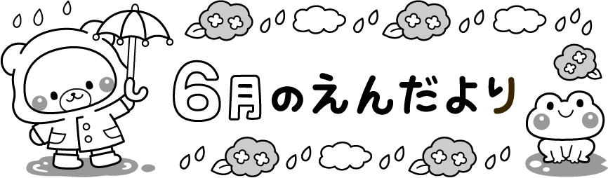 保育園 幼稚園 こども園 園だより えんだより タイトル 6月 6月 梅雨 雨 かさ 傘 動物 くま クマ 熊 カッパ かえる カエル 蛙 くも 雲 花 あじさい アジサイ 紫陽花
