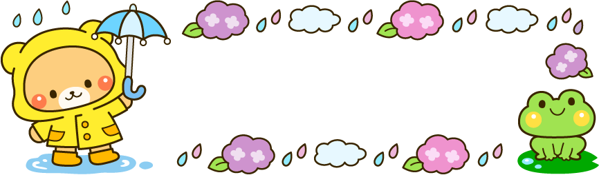 保育園 幼稚園 こども園 園だより えんだより タイトル 6月 6月 梅雨 雨 かさ 傘 動物 くま クマ 熊 カッパ かえる カエル 蛙 くも 雲 花 あじさい アジサイ 紫陽花 夏フレーム