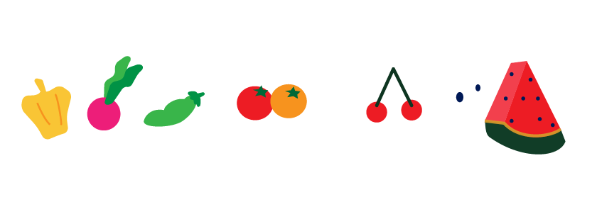 スイカ ラディッシュ やさい プチトマト 食育 えんだより お便り 手紙 園だより さくらんぼ スナップエンドウ パプリカ 野菜マルシェ